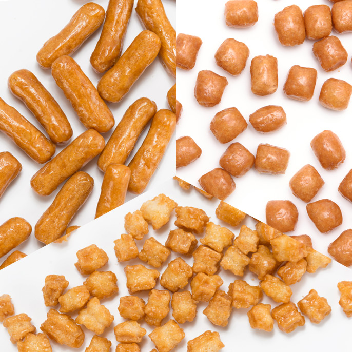 かりんとう 小麦粉(国内製造)、砂糖[上白糖]、植物油(米油100%)、イースト/膨張剤 アレルゲン28品目対象:小麦 さざれ 砂糖[上白糖](国内製造)・植物油・小麦粉・甘藷澱粉・米粉・塩/膨張剤 アレルゲン28品目対象:小麦 こはく 小麦粉(国内製造)・植物油(米油100%)・砂糖[上白糖]・もち米・イースト/膨張剤 アレルゲン28品目対象:小麦 ※本品製造工場では落花生・えび・かにを含む製品を製造しています。 |